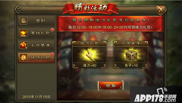 增加体力:每天12点-18点,18点-24点之间,都可以领两次体力,攻击120点体力。