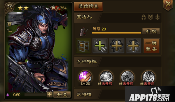 重盾是当之无愧的肉盾,前排主力兵种。特别是有曹仁在,这个前期几近不死金身的神将,重盾兵种还是会持续占着前排霸主地位不动。