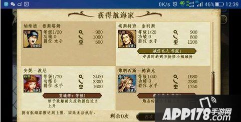 探险平均值超过1万2即可获得最低行动力消耗,也就是说如果要上几个探险值不太够的比如塞胖、亚美利哥,就得上几个更高的来弥补比如伽利略、迪亚士、麦哲伦。