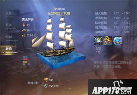 以上就是小编为大家带来的大航海之路轻型阿拉伯帆船属性图鉴,希望大家喜欢。更多精彩的游戏攻略,敬请继续关注APP178手游网。