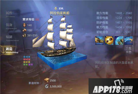 以上就是小编为大家带来的大航海之路阿拉伯桨帆船属性图鉴,希望大家喜欢。更多精彩的游戏攻略,敬请继续关注APP178手游网。