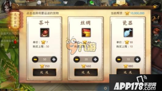 4、在起点处需要用少量帮贡购买货物,然后慢慢负重前行,将货物运送到终点出售,赚取差额。