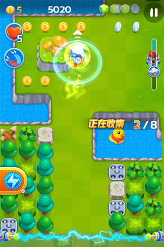 本关在刚开始的时候会让玩家体验到全新的电池人角色“贝克汉.磁”。相信通过使用该角色,会让玩家感受到该角色的厉害之处。该角色拥有吸引周边道具的效果,包含银币、能量球。但需要注意的是该角色只能吸收一格范围的道具,所以还是需要玩家靠近该道具才可,不过鉴于地图左右的宽度并不大,所以可以充分发挥该角色的作用。