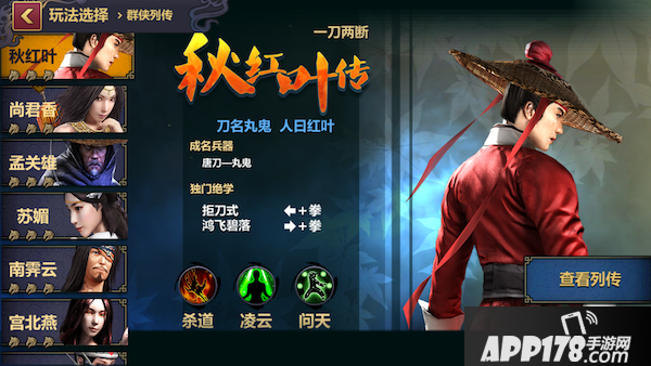 游戏独创群侠系统,每个群侠都有自己行走江湖的故事与本领,一刀两段秋红叶,九天玄女尚君香,谁来陪伴,由你决定。