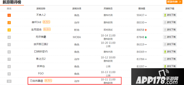 10月10日,距首测开启尚有一日,咱们的游戏已然登上APP178手游新游期待榜前10,在下特地拜谢诸位侠士对《刀剑兵器谱》的支持,这江湖最是热血!