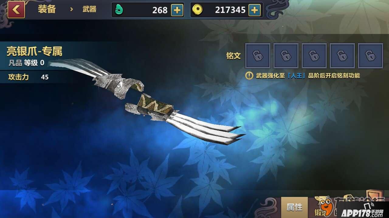 暗器目前只有两种,分别是银针和雨伞,银针的连击和伤害都没有雨伞的高,所以在暗器方面,推荐选择雨伞,其余属性可以在游戏,装备,暗器查看