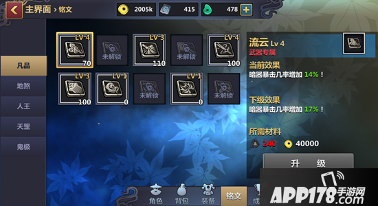 总之,武器在选择铭文首先佩戴高等级的,然后根据自己想要走的路线解锁铭文,铭文到了后期非常重要,所以趁现在都把刀卷攒起来吧!