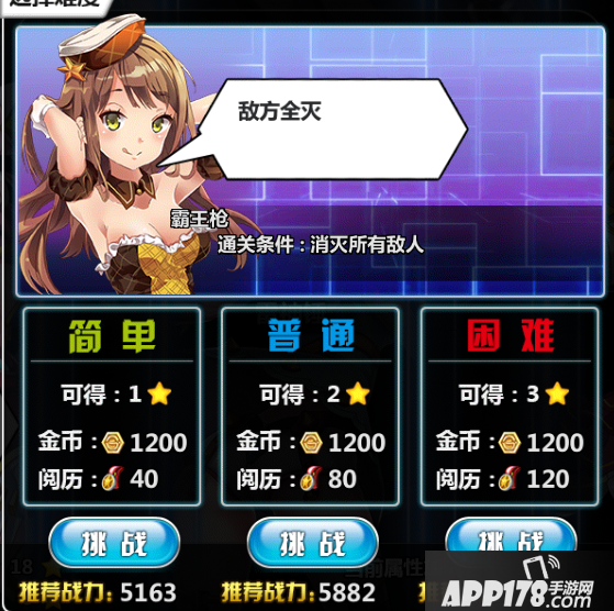 2.推荐战力,每个难度都会显示系统推荐的战力,玩家可以根据自己当前的战力来选择难度。