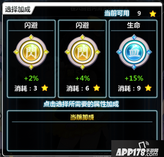5.每通关三个关卡,可以消耗积攒的星数来选择属性加成。