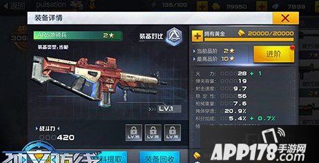 武器强化:装备升级:通过消耗研发点和黄金装备进阶:1-3星使用黄金;3-10星使用枪械组件