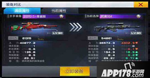 从属性上来看我们的SSR-1-圣诞版相比我们的刺客XM的战斗力上,刺客XM的战斗力比SSR-1-圣诞版高出了3546,火力上SSR-1-圣诞版相比刺客XM上的话,SSR-1-圣诞版高出了刺客XM4302.9,两把枪械都是狙击枪械所以弹夹容量两把枪械相同,枪械射速两把枪械相差不多。稳定性上我们的刺客-XM高出了18.5,枪械重量和掩体穿透两把枪械相差不多,从属性上来看两把枪械相差不多。