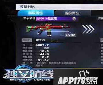 闯关模式应用:就总体而言,M4A1集火力小、射速慢、稳定性低为一体,难以对雇佣兵造成成吨伤害,是不适合闯关模式的,而圣诞版属性得到了大幅度提升,几乎可与AK-47、银河轻骑士媲美,而且作为射击游戏中最经典的两大枪械之一,圣诞版完美继承了M4A1的流畅线性射击,在实际使用中有超越属性值的稳定性、流畅度。