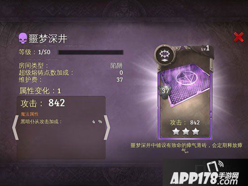 地牢猎手5噩梦深井陷阱介绍!地牢猎手5是一款非常好玩的手机游戏,这款游戏在最近更新出了新的版本,版本内加入了陷阱这一玩法,今天APP178手游小编给大家带来这个版本中死亡属性陷阱噩梦深井的图鉴介绍,希望大家喜欢!