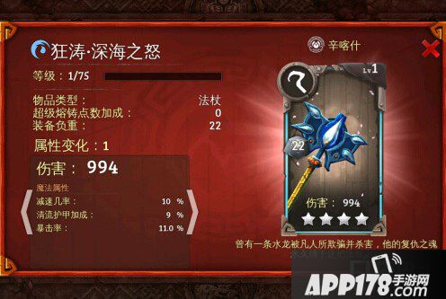 地牢猎手5新版本武器深海之怒图鉴介绍!地牢猎手5终于更新啦,这次的更新版本中全新内容包括,仆从,武器,护甲,下面就让我APP178手游小编给大家说说今天要介绍的这款,希望可以让你喜欢!
