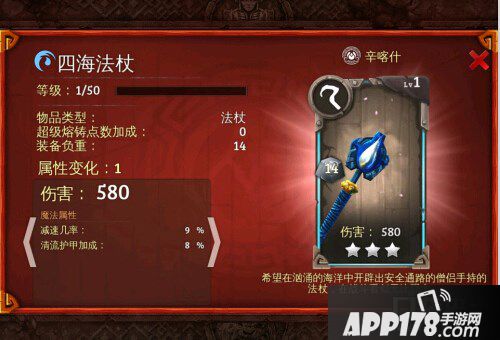 地牢猎手5新版本武器四海法杖图鉴介绍!地牢猎手5终于更新啦,这次的更新版本中全新内容包括,仆从,武器,护甲,下面就让我APP178手游小编给大家说说今天要介绍的这款,希望可以让你喜欢!