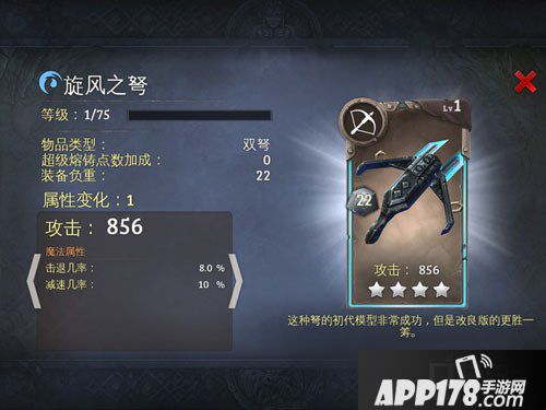 地牢猎手5寒冰属性4星双弩图鉴介绍!地牢猎手5是一款非常好玩的手机游戏,在这款游戏中一共有五种装备,其中法杖和双弩是远程的武器,剩下的是近战。今天APP178手游小编暴走的脂肪给大家带来寒冰属性4星双弩的攻略,下面我们一起来看看吧!