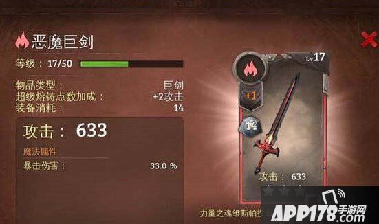 如图上所示,恶魔巨剑是一把拥有超强的暴击属性,玩家只要拥有这把剑,副本再也不愁没输出了。