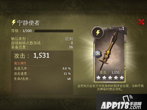 地牢猎手5光明属性宁静使者图鉴介绍!地牢猎手5是一款非常好玩的手机游戏,在这款游戏中一共有五种属性,每一种属性都有自己不同的装备,今天APP178手游小编给大家带来的是光明属性宁静使者图鉴,希望大家喜欢!