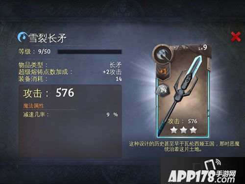 地牢猎手5寒冰属性武器三星长矛图鉴介绍!地牢猎手这款游戏中一共有五种属性和五种武器,每一种武器都有自己的特点,同时属性之间也有着相生相克的关系。长矛,有着一种非常均匀的攻击能力,但是威力一般。今天APP178手游小编就来给大家说说这款游戏中寒冰属性武器三星长矛图鉴,希望大家喜欢!