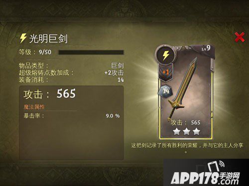 武器介绍:这把剑纪录了所有胜利的荣耀,并与它的主人分享。