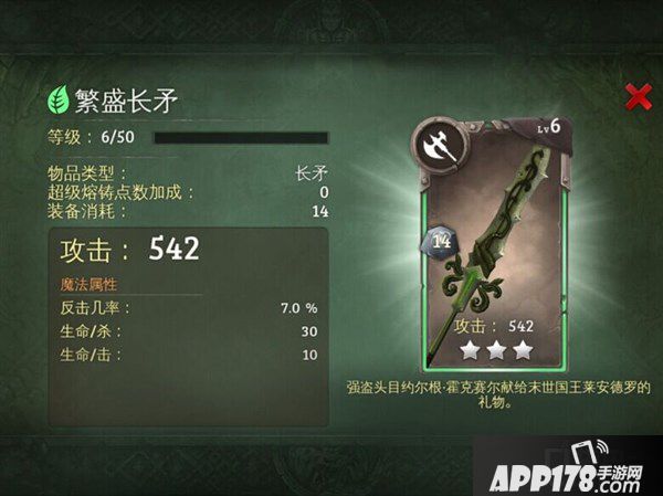 地牢猎手5自然属性三星武器繁盛长矛图鉴介绍。地牢猎手这款游戏中一共有五种属性和五种武器,每一种武器都有自己的特点,同时属性之间也有着相生相克的关系。那么什么武器比较厉害呢?下面小编就为大家带来地牢猎手5自然属性三星武器繁盛长矛图鉴解析。