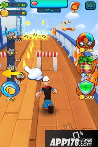 2.道路上的吸铁石、菠菜等道具作为辅助道具,吃到后会有特殊效果;