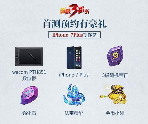 喜欢该作品的玩家不妨登陆《盗墓三番队》双端概念站预约首测吧,凡是通过双端概念站预约首测的玩家,即可以在预约当日获得一份神秘大礼又能在首测当天参与豪礼抽奖活动,iPhone7Plus等你来拿!