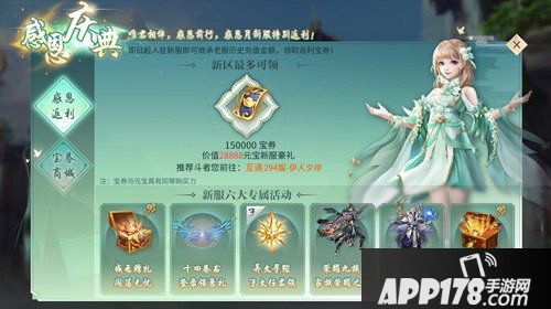 唯君相伴,感恩前行,回归斗者感恩月新服特别返利!11月29日—1月31日所有斗者都可有【福利】面板进入参与感恩庆典活动,每日达到一定活跃度即可领取总值为15000元宝的超值好礼相送。并在截止2019年9月30日前注册游戏角色且在10月1日 — 11月20日未登录游戏的斗者入驻新服即可通过宝卷继承的方式继承老服部分历史充值金额,领取返利宝券,最高可领价值150000元宝返利!更有新服冲级大礼和属性称号:感恩的心等你来拿!(本活动一个账号仅可参与一次哦)