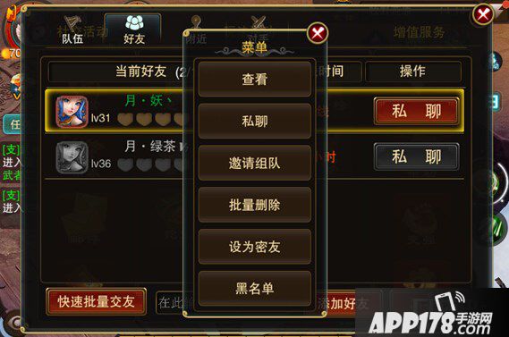 Ø 邀请组队:点击后与玩家申请成为队伍关系.