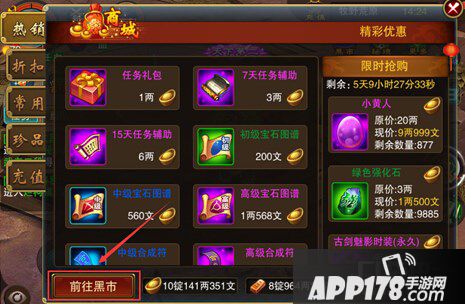 2.玩家可以将挖宝、活动获得的物品,卖入黑市;或从商城直接兑换壕金。