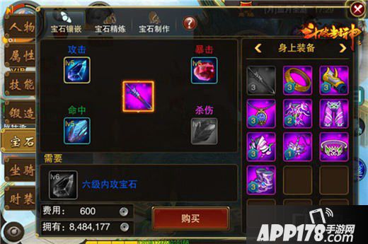 玩家等级达到50级后,即可对装备进行宝石镶嵌。宝石镶嵌无需打孔直接镶嵌,不仅能让玩家省去一大笔打孔费,而且还减少了打孔失败的挫败感,让游戏更轻松、更舒心。目前,《斗破封神》的每件装备最多可镶嵌4个宝石,根据装备类型不同,镶嵌的宝石种类也不同。攻击类装备可依次镶嵌攻击、命中、暴击、杀伤宝石。而防御类装备可依次镶嵌内防、外防、闪避、气血宝石。