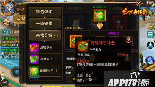 第一:低级道具合成高级道具。如5粒进阶丹可合成1粒中级进阶丹。3张普通藏宝图可合成1张中级藏宝图。