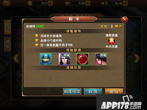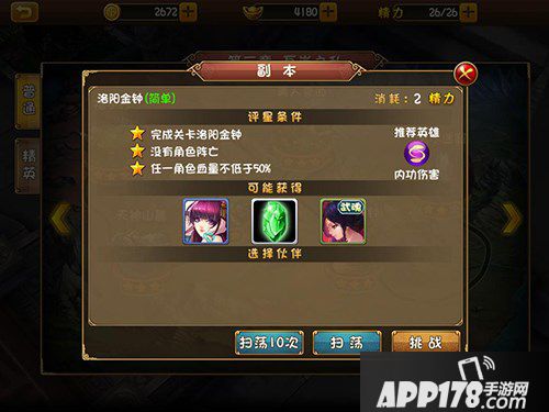 如图在“洛阳金钟”这一关,玩家必须完成关卡洛阳金钟时没有角色阵亡,并且任一角色血量不低于50%,才能获得三星关卡。