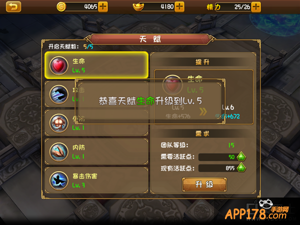 不少玩家初入游戏,会把精力放在如何攻击大BOSS上,随着通关数量的增加,关卡的难度越来越高,可是职业作战实力却没有明显提高……那么问题来了:怎样才能提高作战实力、顺利通关呢?在这里小编需要建议各位玩家,在作战的间隙要及时到天赋系统进行升级,以适应职业战斗的需要,这样才能更快、更好地攻下关卡!