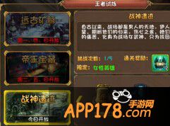 团队等级达到10级开放,这里是远古战场,这里有无限挑战和机遇,只有选择最合适的英雄搭配才能取得胜利,将宝藏收入囊中。