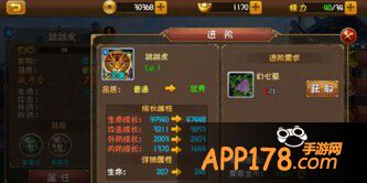进阶:可以使用道具“幻心草”通过进阶可以获得属性大幅增加,并且获得主动技能“风袭”(不同阶段的进阶需求材料不一样哦)