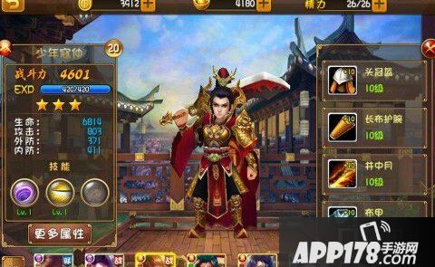 小编最喜欢寇仲,所以先选择少年寇仲进行培养,右侧依次有升级、进阶、装备、修炼、经脉、解散。