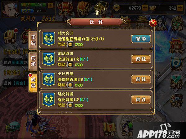 玩家在主界面就可以看到任务了,任务主要分为三方面: