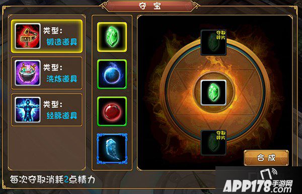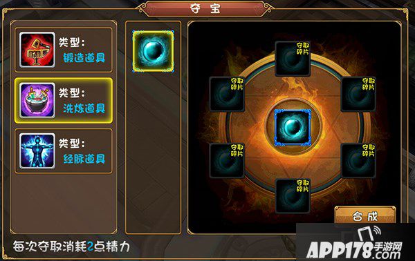 夺宝是大唐双龙传手游的竞技玩法之一,玩家可以战胜其他玩家夺取道具碎片用来合成道具。每次夺取需要消耗2点精力。可以合成的道具主要用来装备锻造、装备洗炼和英雄经脉开通。