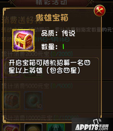 傲雄宝箱开启可随机招募一名四星以上英雄(包含四星)