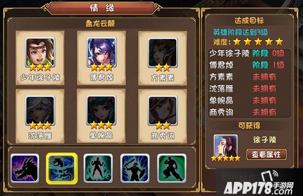 情缘难度为五颗星,达成情缘盘龙云颠可以获得五星英雄徐子陵。
