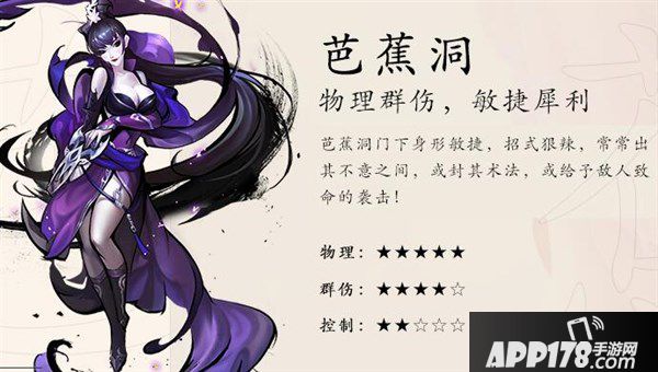 芭蕉洞---物理群伤,爆炸输出的人物,其主要技能七修剑,40级能秒4,伤害暴击率高爆炸,清场神技,还有其他技能能封能打除了不能奶,他什么不能干?