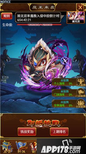 围剿魔王的开放等级比较高,玩家在初期上手游戏时还接触不到,当你对游戏了如指掌的时候,自然而然的就会开始寻求这项激动人心的挑战内容了。围剿魔王会在每天的20:00开启挑战,如果魔王没有在24:00时之前被击败,玩家们就无法获得相应的奖励。