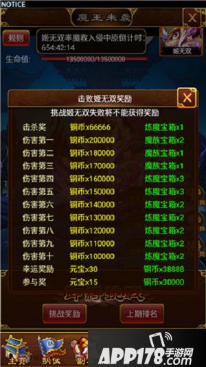 每次挑战魔王之后会有一定的冷却时间,毕竟英雄面对强大的对手也需要一点时间用来休息一下。如果你急不可耐想要再次挑战,不愿等待冷却,也可以花费元宝来立即消除冷却时间。由于在魔王被击杀或是挑战活动结束后会根据玩家在本次围剿中造成的伤害总值进行排名,争夺排名的玩家之间可能会上演惊心动魄的输出大战,消除冷却的操作想必将会十分频繁。毕竟排名越高所能拿到的奖励也就越是丰厚。