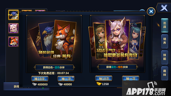 分类:分为攻,辅,御三种类型;不同类型的伙伴侧重不同,包括增加输出、释放、辅助类技能以及给角色提供属性加成等等。