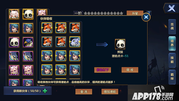 在小伙伴培养中其中有能够提升小伙伴潜能的关键功能,此功能需要通过吸收玩家不需要的其它小伙伴增加潜能值,品级越高的小伙伴提供的潜能值越高。