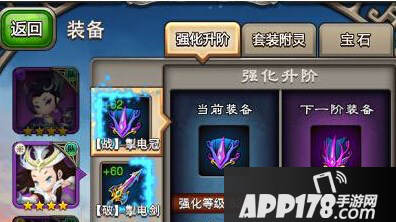 装备进阶:可提升装备属性,并直接改变装备的颜色品质;‘战役’副本是获得装备进阶材料的主要渠道,装备升阶受到强化等级影响,例:装备每强化10级,可进阶一次;