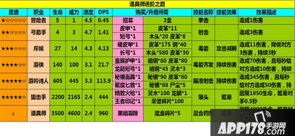 说到道具师这个职业,相信很多玩家爱都很陌生,因为他的进化材料只能通过黑暗裂隙获得,算是一个打后期兵种。