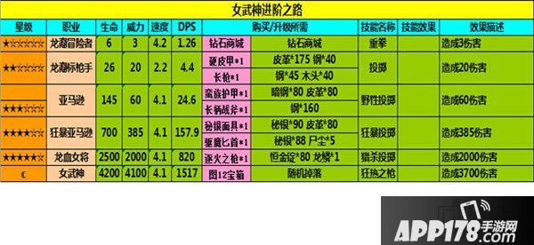 在这个分支进阶过程中,有6个阶段分别是:龙裔冒险者、龙裔标枪手、亚马逊、狂暴亚马逊、龙血女将、女武神。