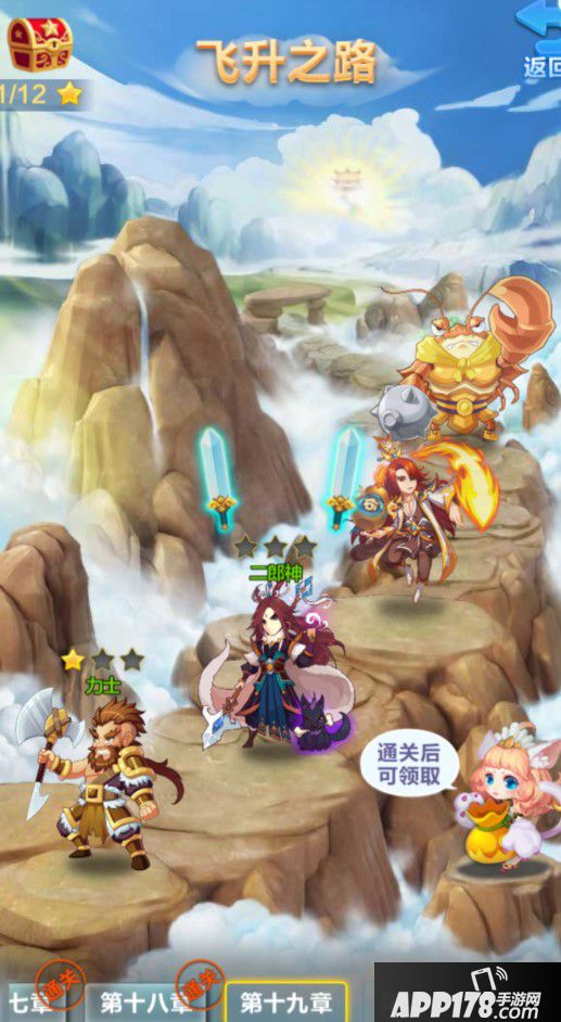 飞升之路和主线副本相同,有多个章节,每个章节有4个小怪,战斗胜利且没有阵亡神仙的话会获得三星评价,当达到4星、8星、12星时分别能获得不同的宝箱奖励,奖励里面有金灿灿的元宝和稀缺的飞升丹哦~,同时每通关一个章节的时候会有一个章节宝箱可以领取,通关的时候记得点击猫娘来领取哦~,里面有飞升丹和各种飞升道具,非常实用。